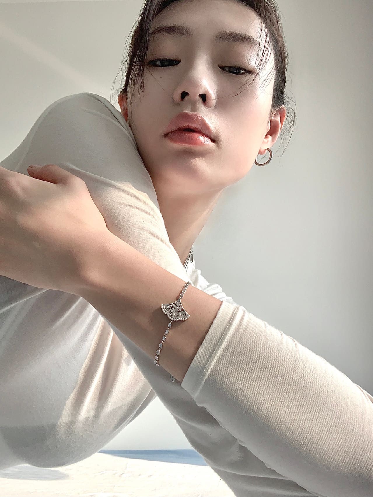 发型与配饰的搭配也至关重要。过于厚重的刘海可能会将视觉重心过度压抑在下庭,显得不够清爽。大方地露出额头,或将发型打理得清爽利落,能让整体形象更显大气舒展。在配饰上,一对线条修长的吊坠耳环,能够有效拉长脸部线条,平衡唇部的量感,并增添精致度。