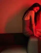 李沁倚靠窗边沉思,阳光洒落肩头,圆点裙在光影间更显柔美